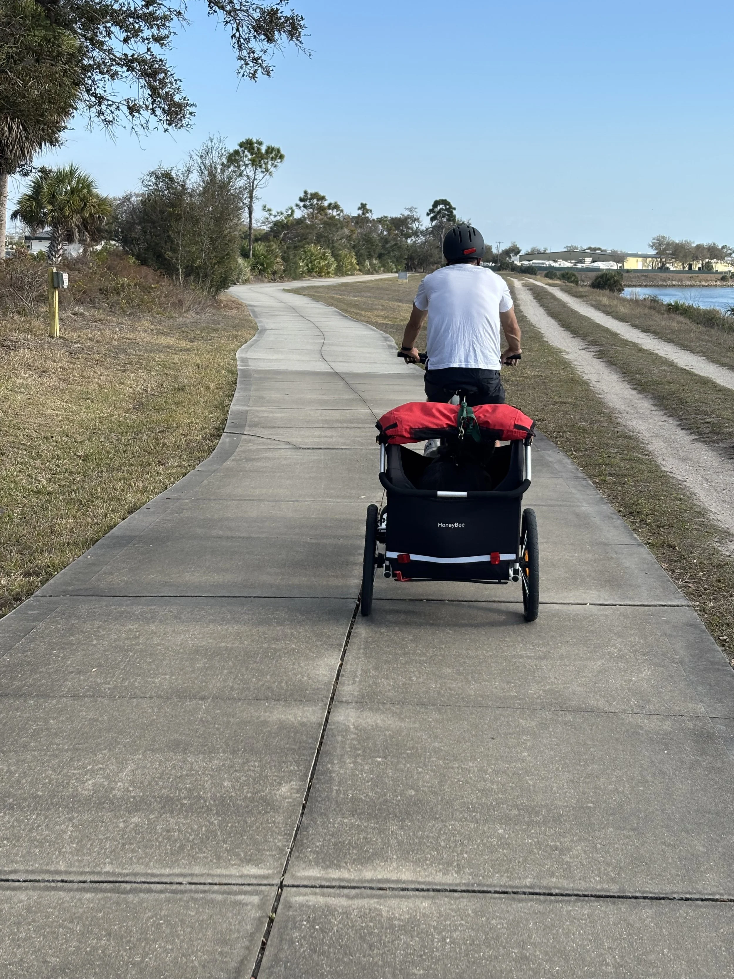 Christina has a cousin that lives near Venice (Florida, not Italy), and we took the opportunity to meet for dinner. We drove up in the morning and had lunch in their historic downtown (which for the record does NOT look like Venice, Italy despite what their marketing says). We enjoyed a tasty pizza at Made in Italy before strolling main street. Our biggest observation was there are a lot of old people in Venice. It was almost like a convention was happening. They have a 20-mile bike trail that connects Venice to Sarasota. We loaded Mack in his bike trailer (which he is learning to tolerate) and road about 8 miles along a canal running through Venice.