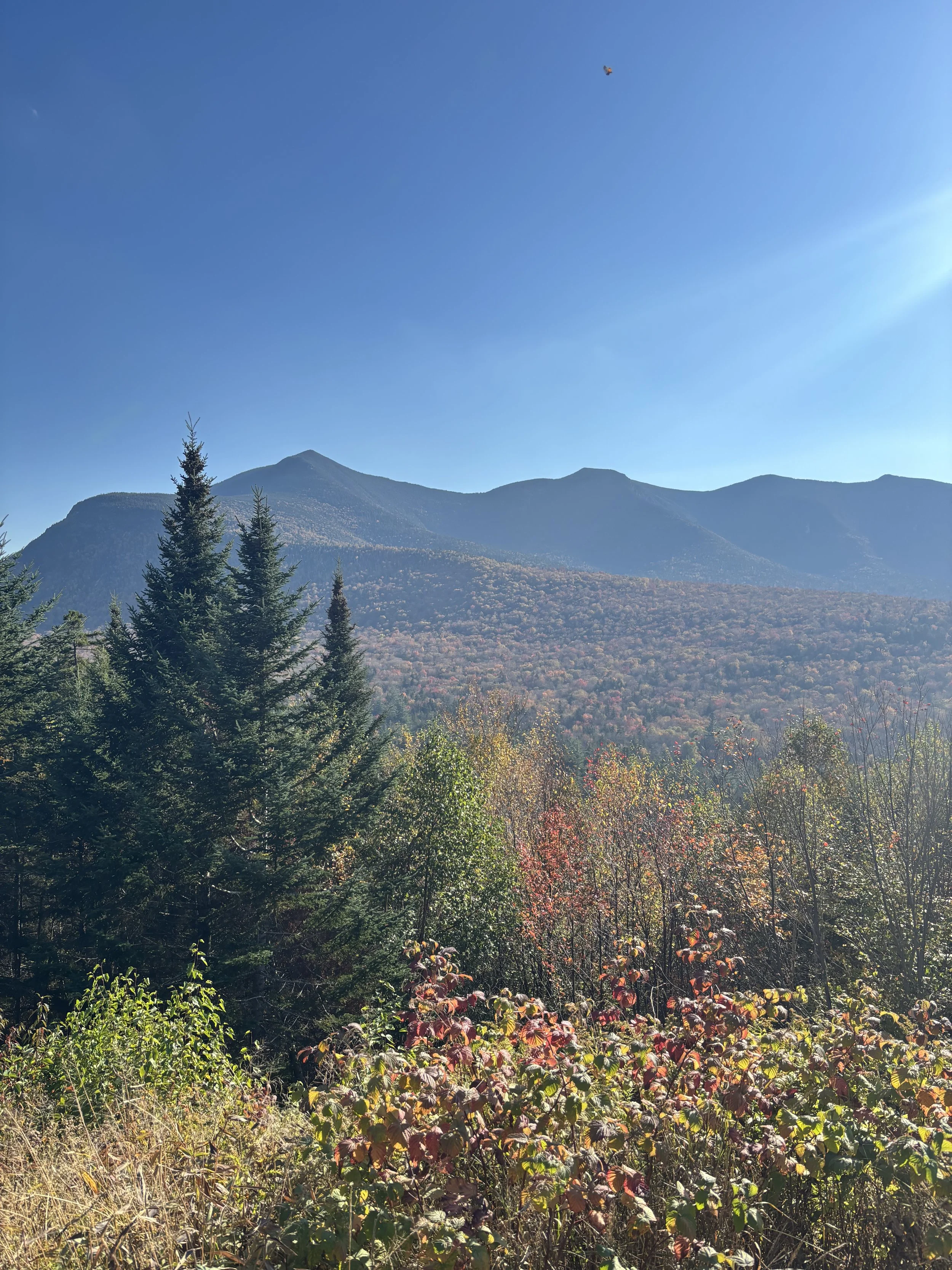Over the next couple of days, while we were waiting for updates on our truck, we went sight-seeing. We headed up to Franconia Notch State Park and the Kancamagus Highway. We arrived early at the state park only to find that their premier attraction, the Flume Gorge, was SOLD OUT for the day. Time to pivot. We got some recommendations on hikes in the area and decided to hike Mt. Pemigewasset. If you read our post on Smuggler’s Notch, you know we thought that hike was a doozy. This one was worse. It was 3.6 miles round trip, with a 1250 foot elevation gain. The payoff, though, was definitely worth the effort. When we reached the top, we were greeted with a cliff overlooking multiple mountains and beautiful foliage. It was a beautiful day. So, we took some time to soak in the view and the vitamin D before making the trek back down.