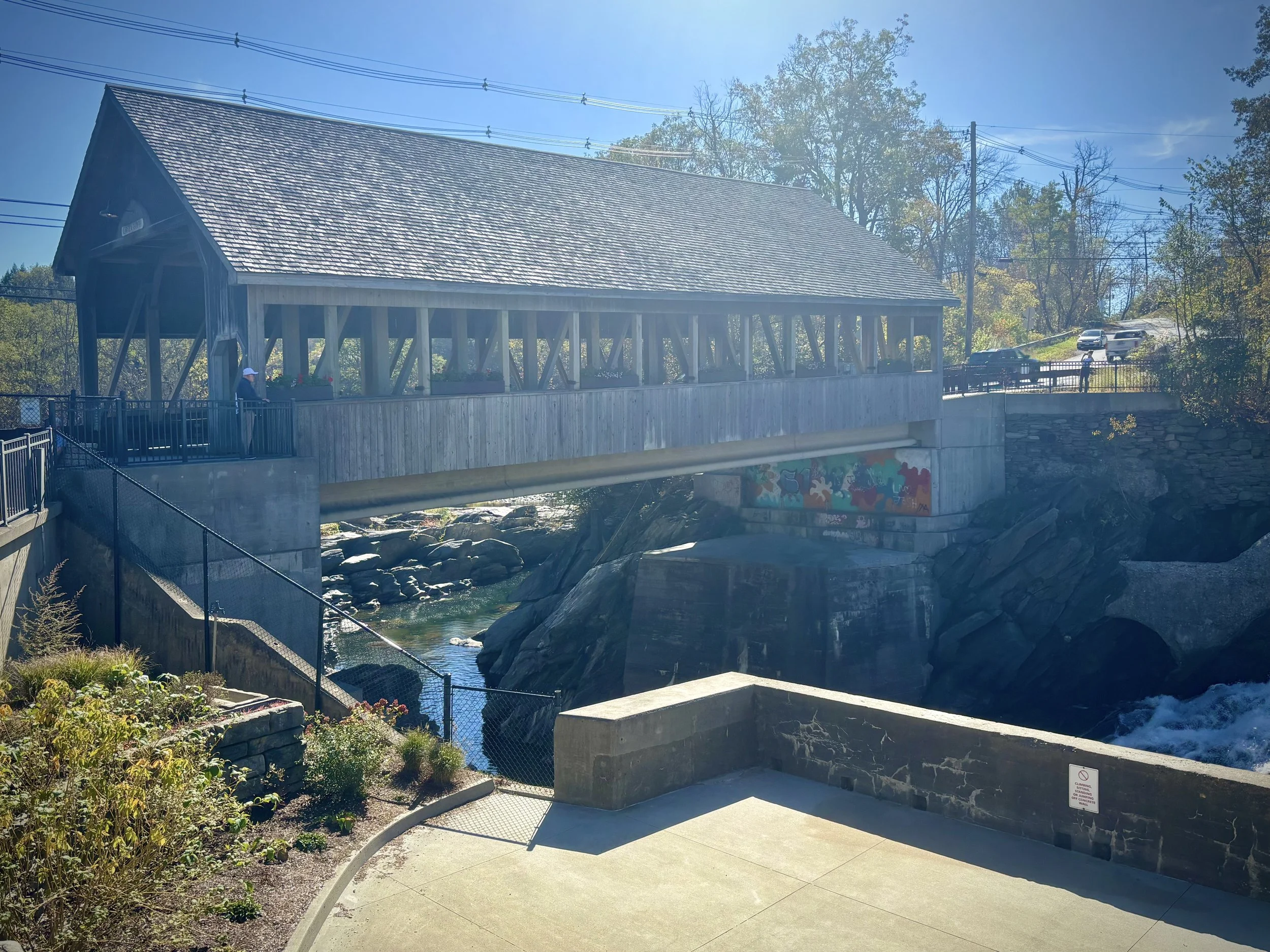 The next day, since we now had time to kill, we went back to Vermont to visit the town of Woodstock. (Not to be confused with North Woodstock, New Hampshire or any of the other Woodstocks in New England) This is another town that is full of charm. The history of the town goes back to 1761 when the first European settlers were arriving in droves. It quickly became of one the largest towns in Vermont. Today, it has dwindled in size, but definitely not in appeal. It’s full of historic sites, beautiful homes, and lots of outdoor activities. We kick started our day with breakfast a very popular spot called the Mon Vert Café. It is a cute café in the center of town with good food and lots of coffee options. The town itself was bustling with activity (almost too much) and it seemed almost everyone was in town to see the fall foliage. We strolled around town, taking in the buildings, the quaint shops, and the Middle Covered Bridge which stretches over the Ottauquechee River. Next to the bridge, you will find Simon Pearce Glassware. This is not only a store, but also a glass blowing and pottery studio. If you head downstairs, you can watch the artisans at work. This is certainly a town we would recommend visiting if you are ever in the area. If you go during the fall, it is best to book early as things fill up fast.